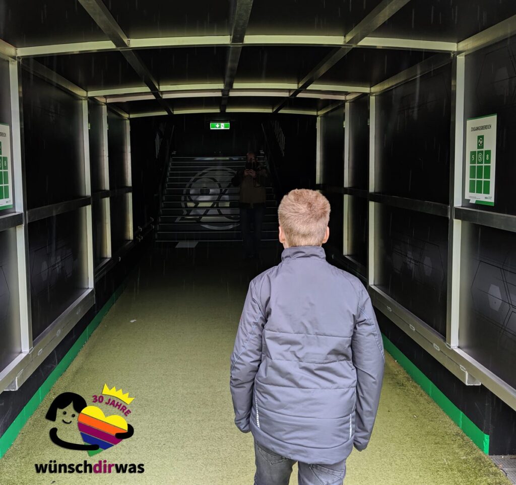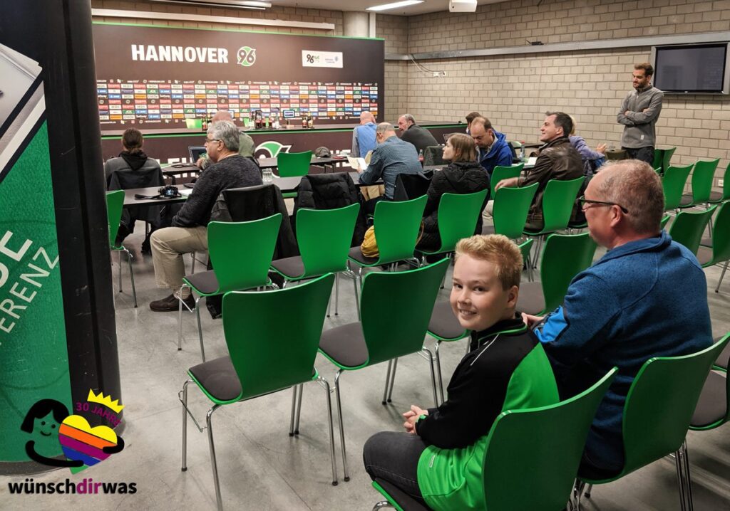 Am Ende des Treffens bekam Timo noch ein Trikot mit Unterschrift geschenkt und wurde sogar dazu eingeladen bei einer Pressekonferenz live dabei zu sein. Auf diese Weise konnte er direkt die letzte Presseansprache der laufenden Saison von Trainer Thomas Doll miterleben. Für die abschließende Portion Gänsehaut sorgte dann noch der Gang durch den berühmten Spielertunnel aufs Spielfeld – begleitet von der 96-Hymne, die über die Lautsprecher  eingespielt wurde.