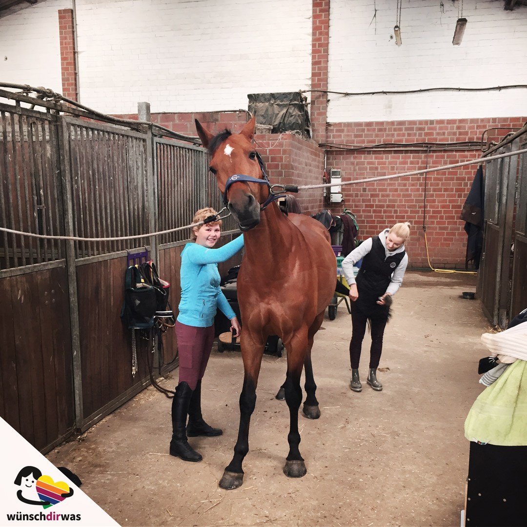 Danach ging es ab in den Reitstall, wo Saskia dabei half, die Pferde zu striegeln und zu kämmen. Ein kleiner Ritt auf einem der Pferde durfte nicht fehlen. Für Saskia als Reitprofi natürlich gar kein Problem.