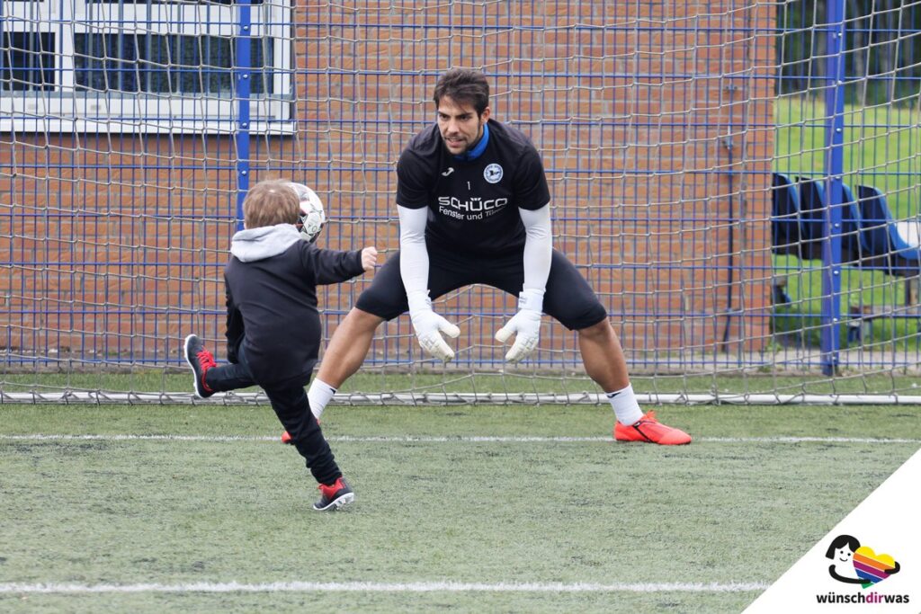 Dort beobachtete er gespannt das Training der Mannschaft. Dann schließlich kam der große Moment und Leif durfte mit Stefan Ortega, Fabian Klos und Florian Hartherz zusammen trainieren. Innerhalb von Sekunden wurde alle Restschüchternheit abgeschüttelt und Leif war ganz in seinem Element, schoss und rannte. Besonders der Torwart Stefan Ortega musste sich bemühen, alle Bälle von Leif abzuwehren.