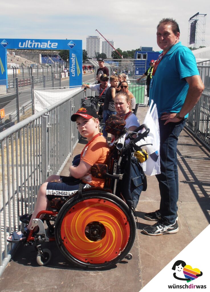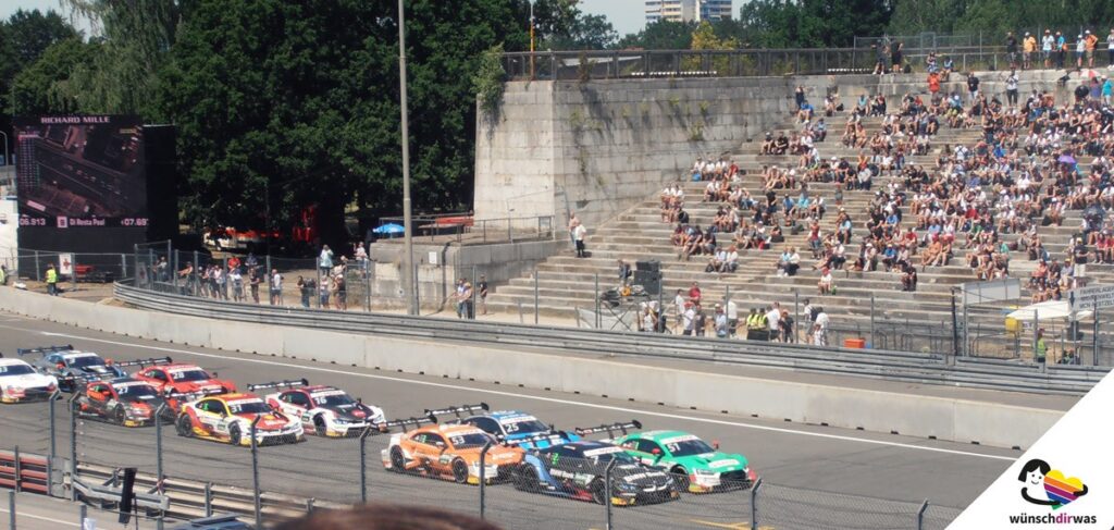 Endgültig vorbei mit der Ruhe war es dann am nächsten Tag, als die Familie direkt an der Tribüne am Boxeneingang auf der Start- und Zielgeraden Platz nehmen konnte und das 1. Rennen begann. Dem Anlass entsprechend mit Original DTM Cappies ausgerüstet, verfolgten sie gemeinsam die nächsten spannenden Rennen und hatten viel Spaß zusammen die folgenden Tage.