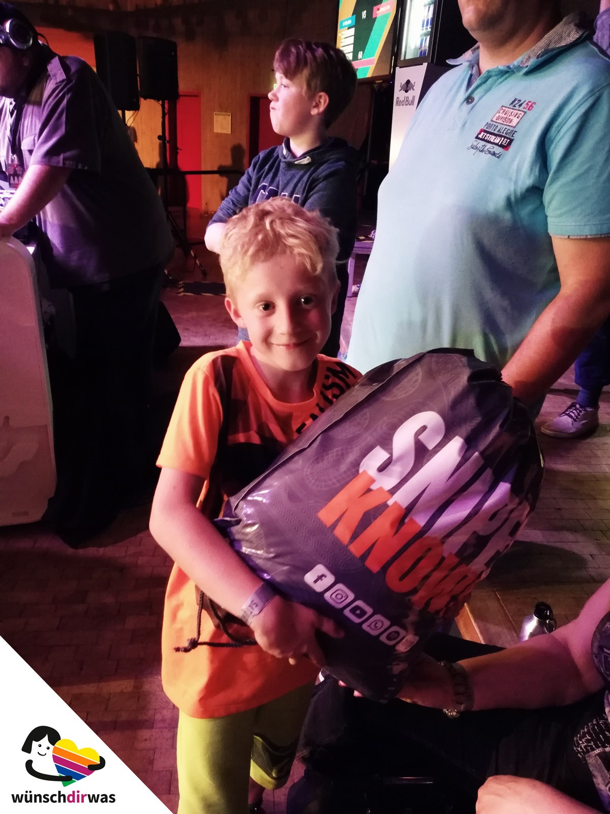 Im Laufe des Tages ging es dann ans Tanzen und Finn lernte viele neue Bewegungen und war mit großer Begeisterung dabei. Ab und zu gab es dann auch mal einen Abstecher auf die Hüpfburg und nebenbei sackte Finn auch noch einen ganzen Beutel voller T-Shirts und Hoodies ein. Finns Augen leuchteten. Auf die Frage, was ihm am besten gefallen hat, sagt er: „Das weiß ich gar nicht, es sind so viele schöne Sachen heute.“ Wunschmission erfüllt!