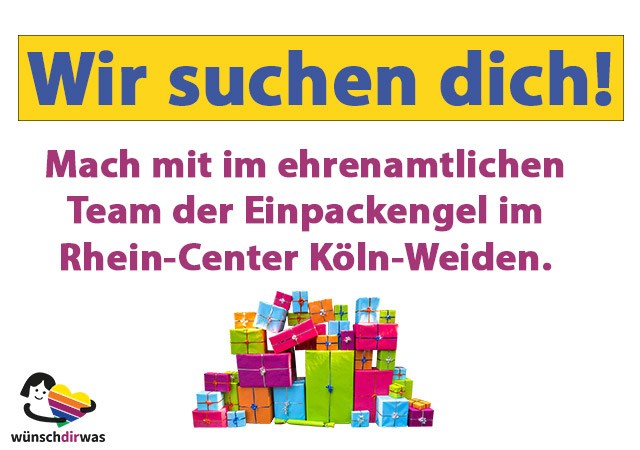 Eine schöne vorweihnachtliche Tradition geht auch 2020 wieder weiter: Ab voraussichtlich Mitte November bis Weihnachten werden im Rhein-Center Köln-Weiden fleißig Geschenke gegen eine Spende verpackt. Hierfür werden freiwillige Helfer gesucht, die Spaß am liebevollen Einpacken von Weihnachtsgeschenken haben. Der Erlös der Aktion kommt wünschdirwas e.V. zugute. Dieses Jahr übernimmt unsere Ehrenamtlerin Gaby Wichterich die Organisation. […]