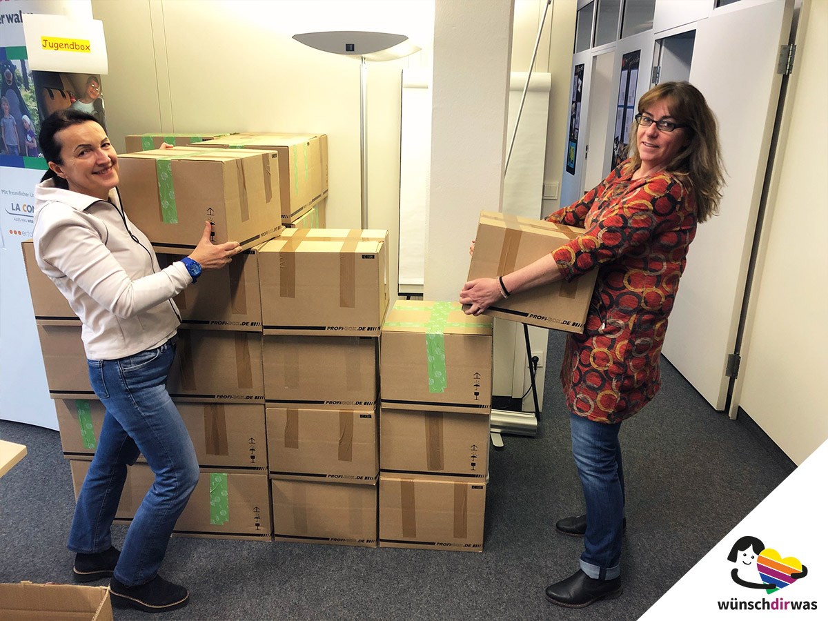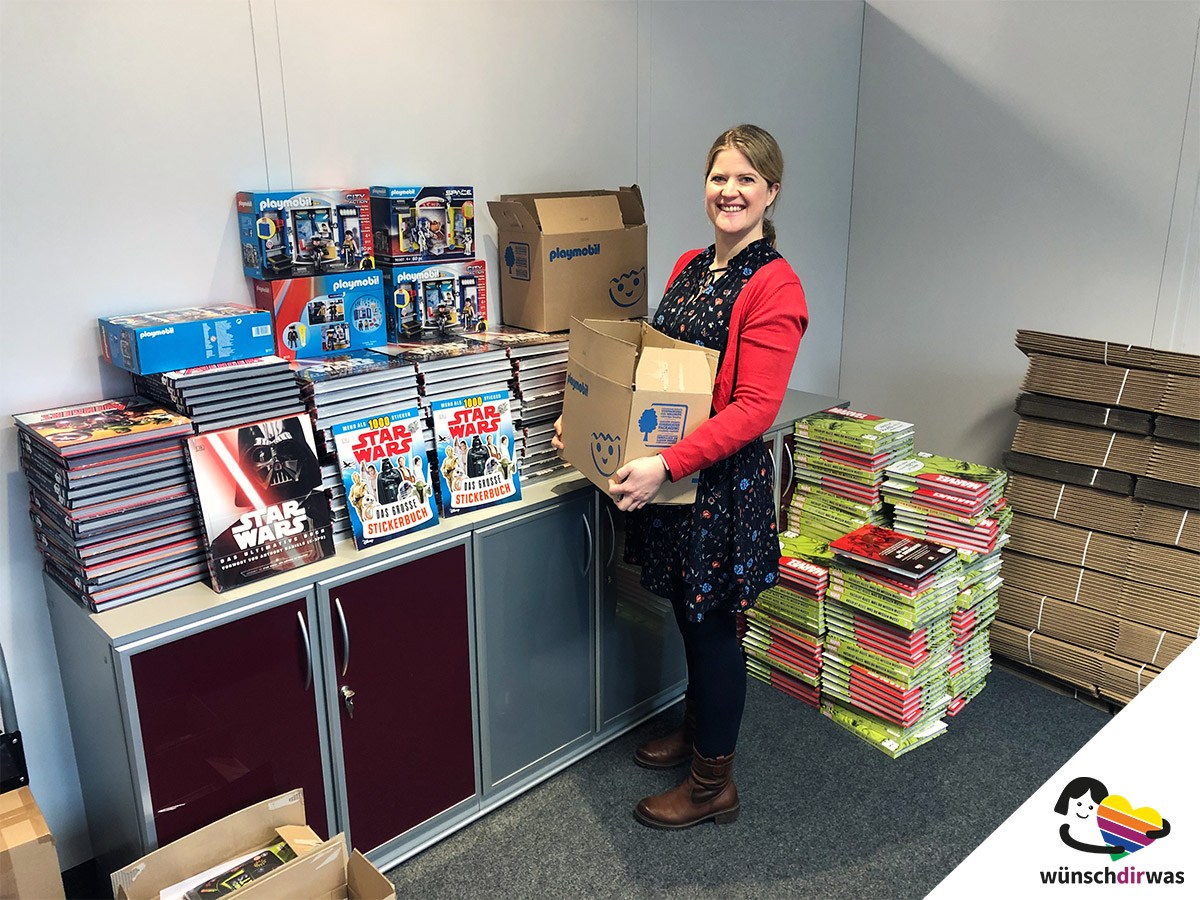 Aufgrund der großartigen Resonanz der Kliniken haben wir uns entschieden noch einmal als weihnachtliche Jahresabschluss, eine große Versandaktion zu starten. Im Moment verlassen täglich Duzende Kinder- und Jugendlichen-Boxen das Kölner Büro und machen sich auf die Reise in die Kinderkliniken und Hospize.