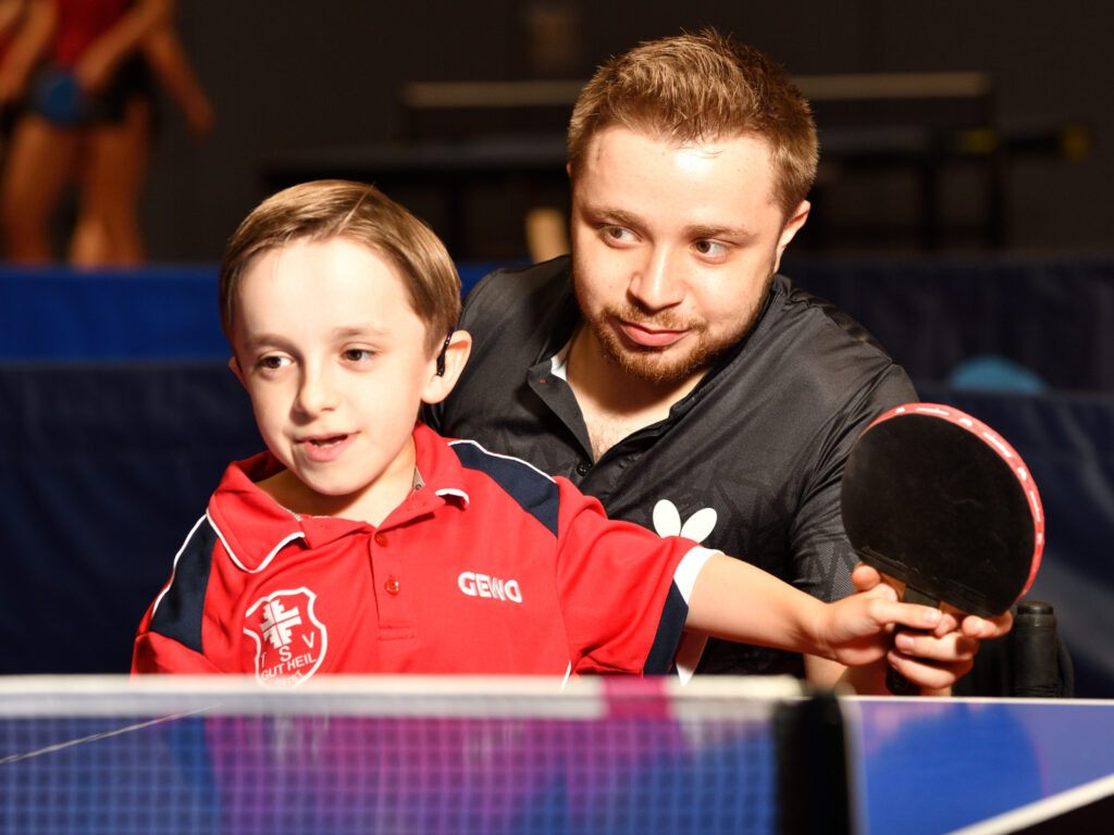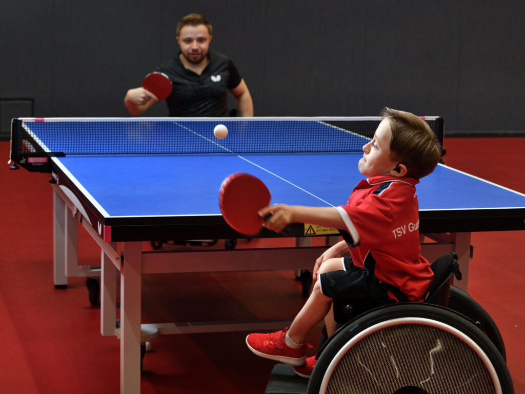 Moritz ist ein unglaublich fröhlicher Junge, der trotz seiner Glasknochenkrankheit sehr sportbegeistert ist. Als der 12-Jährige im vergangenen Jahr die Paralympics in Tokio im Fernsehen sah, traute er seinen Augen kaum: da gewann doch tatsächlich Valentin Baus die Goldmedaille im Tischtennis, der ebenfalls die Glasknochenkrankheit hat und wie Moritz im Rollstuhl sitzt. Moritz war hin und weg und wollte den Ausnahmesportler Baus unbedingt kennenlernen. Aber nicht nur das: Durch den Paralympics-Sieg von Baus war Moritz sportlicher Ehrgeiz geweckt und er meldete sich auch im Tischtennisverein an. Sein großer Wunsch an wünschdirwas war, mit Valentin Baus einmal Tischtennis zu spielen und ihn Löcher in den Bauch fragen zu dürfen. Das haben wir ihm von Herzen gern ermöglicht und Valentin Baus hat uns sofort nach unserer Anfrage begeistert zugesagt.