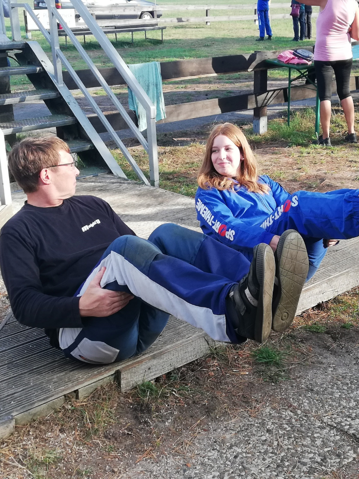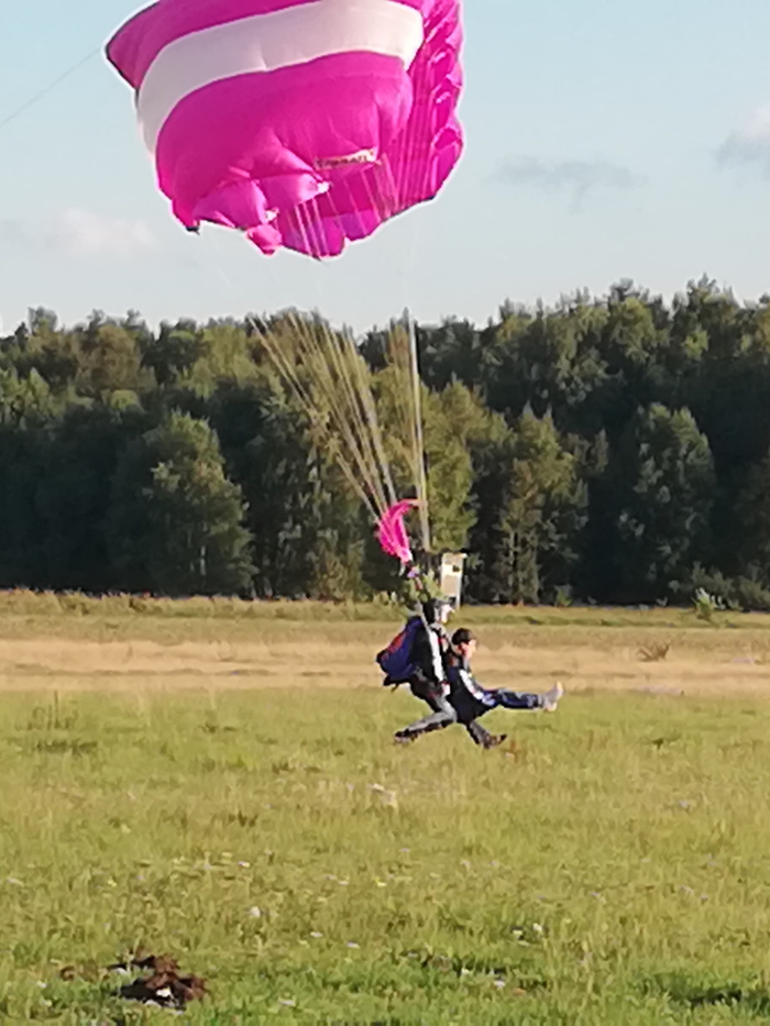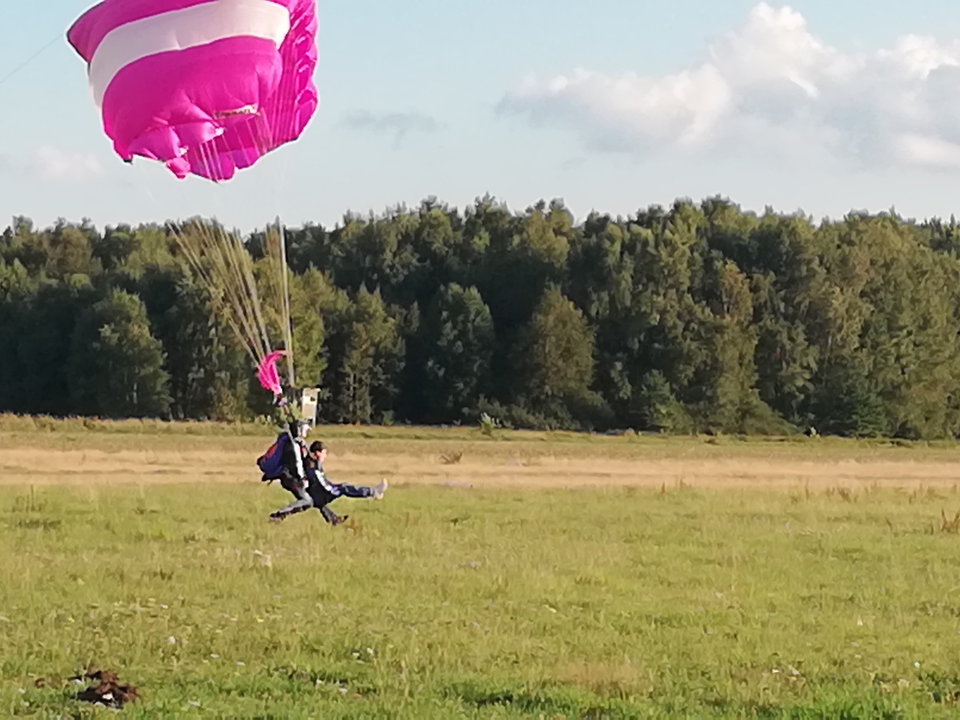 Zusammen mit Frank Bremer, einem erfahrener Fallschirmspringer mit Sonderausbildung für Tandemsprünge, springt Finnja schließlich aus dem Flugzeug. Für uns am Boden ist sie nur noch ein kleiner Punkt am Himmel. Finnja erzählt uns später, dass er bei ihr tatsächlich einen unglaublichen Adrenalinausstoß ausgelöst habe und ein Gefühl, das einzigartig sei und sich nicht beschreiben lasse. Das Hinuntergleiten nach Auslösen des Fallschirmes habe sie auch sehr genossen. Sie konnte den Ausblick über das Steinhuder Meer und bis zum Harz genießen. Von da oben sah alles so schön friedlich und dank des schönen Wetters so farbenprächtig aus.