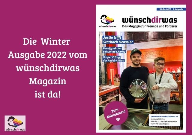 Zum Ende des Jahres präsentieren wir Euch stolz die neueste Ausgabe des wünschdirwas-Magazins. In unserem Magazin könnt Ihr noch einmal viele tolle Wunscherfüllungen aus den vergangenen Monaten nachlesen. In unserer Titelstory trifft Julian Starkoch Steffen Henssler und erzählt persönlich, wie die Erfüllung seines Herzenswunsches war.