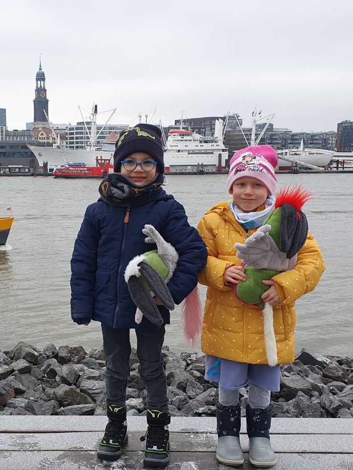 An einem Samstag machte sich die ganze Familie auf den Weg nach Hamburg. Natürlich durften unsere beiden Wunschboten „Bud“ nicht fehlen, denn wie hätten wir ohne sie den Weg finden sollen.