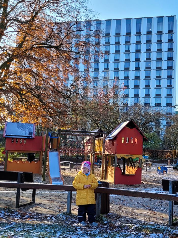 Nach dem Musical fuhren wir in unser Hotel Intercity Dammtor und verbrachten dort eine Nacht in toll ausgestatteten Zimmern sowie einem schönen Blick über Hamburg. Am besten gefiel uns aber der riesengroße Spielplatz direkt vor unserem Fenster. Schneebedeckt sahen die Höhlen aus wie große Iglus. Gestärkt von einem leckeren Frühstück wollten wir dort am nächsten Morgen unbedingt spielen. Aufgrund der Lage am tollen Spielplatz hätte Bud uns zu keinem besseren Hotel bringen können!