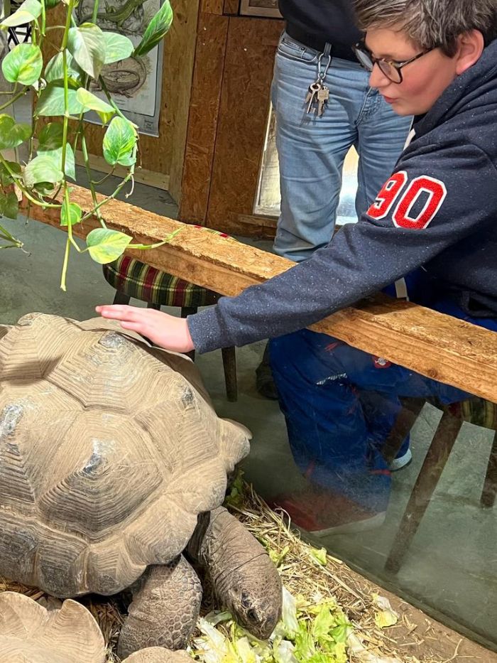 Mit seinem Vater und Zoo-Inhaber Karl-Heinz hat er einen unvergesslichen Tag im Reptilien Zoo verbracht. Er durfte die Tiere streicheln, füttern und sogar eine seltene Python halten. Bei einem gemeinsamen Pizzaessen am Abend konnte Lukas den Tag Revue passieren lassen und freute sich besonders über das aussergewöhnliche Buch über Schildkröten, das ihm unsere Wunschbegleitung schenkte.