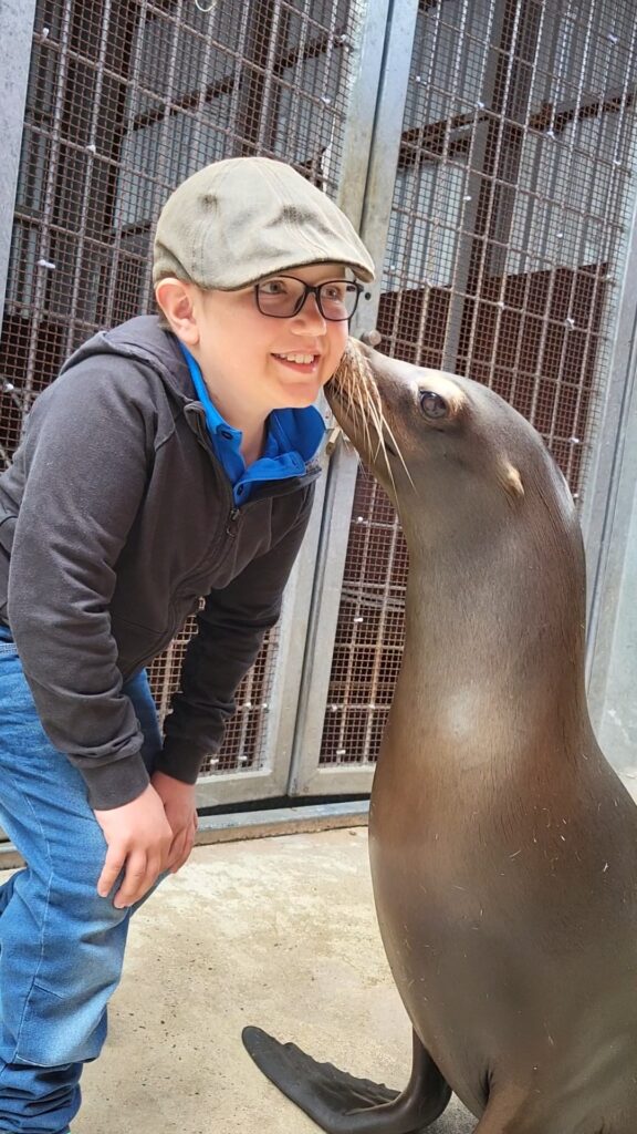 Im Anschluss besuchten sie die kalifornische Seelöwin Lotta, mit der unser Wunschkind ein paar Tricks einstudieren durfte. Nach einer Handgeste als Befehl brüllte Lotta sehr laut. Dadurch sind alle vor Schreck zusammengezuckt, bis auf Timo, obwohl er direkt neben Lotta stand.