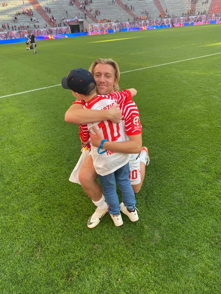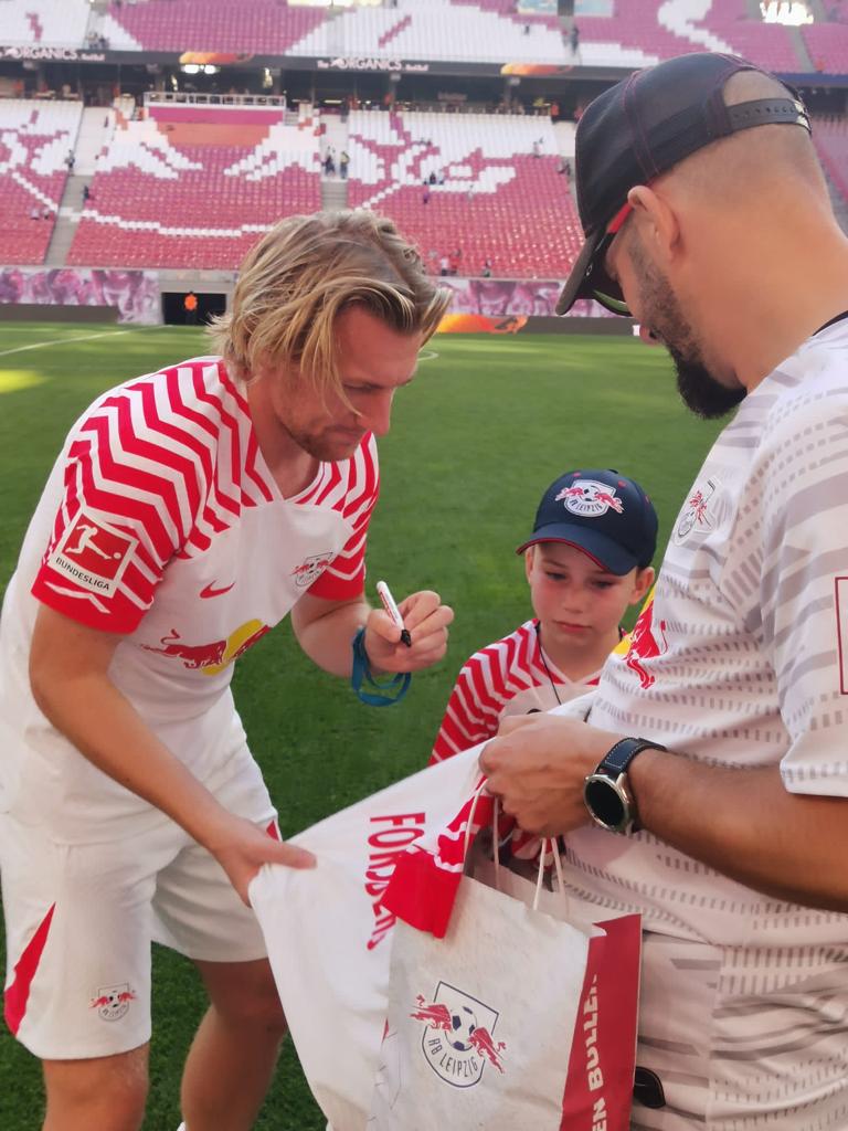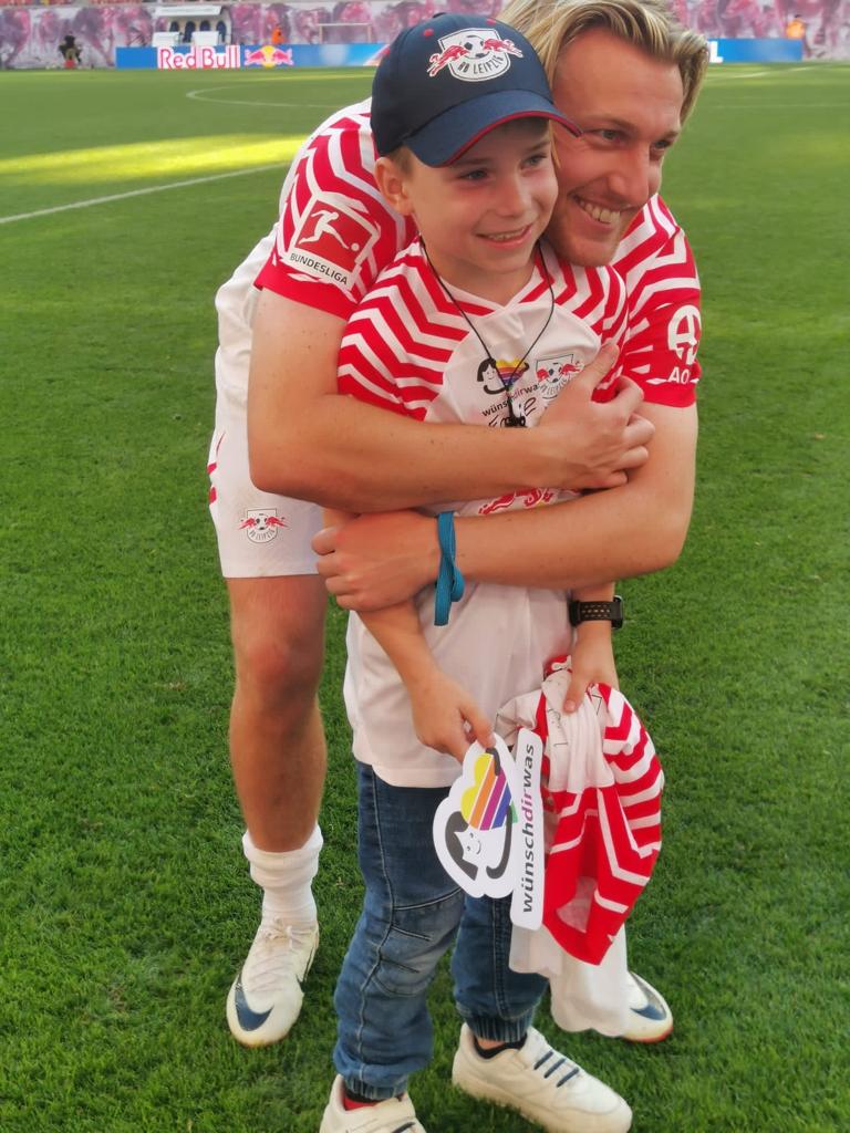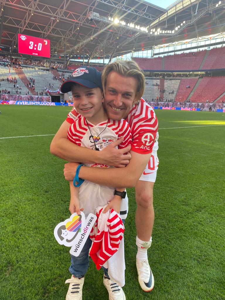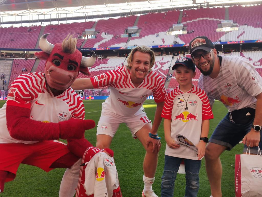 Dies sollte dann auch geschehen: Mit der Hilfe von „RB Leipzig“ und unserem lieben Unterstützer Tino Wächter gelang es, dass Emil zuerst ein tolles Fußballspiel auf der Haupttribüne erleben durfte und anschließend tatsächlich Forsberg treffen konnte. Aber seht selbst – die Fotos sprechen für sich.