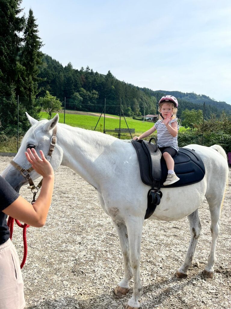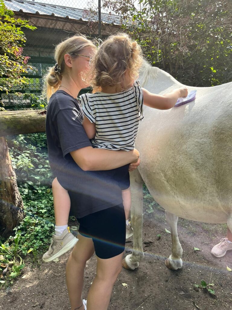 Ella liebt Pferde über alles und ihr Wunsch war es, reiten zu lernen und die Tiere hautnah zu erleben. Am Anfang war sie sehr schüchtern und traute sich nicht, die Pferde zu berühren und zu streicheln. Das änderte sich schnell im Laufe der Therapie. Inzwischen küsst und umarmt Ella „ihr Pferd“ und zeigt ihm mit Gebärden ihre Liebe. Ihr Lieblingspferd heißt Geyran, ein arabischer Name. Sie hat große Freude an ihren Therapiestunden und kommt immer sehr entspannt nach Hause. Wir freuen uns sehr für dich, liebe Ella!