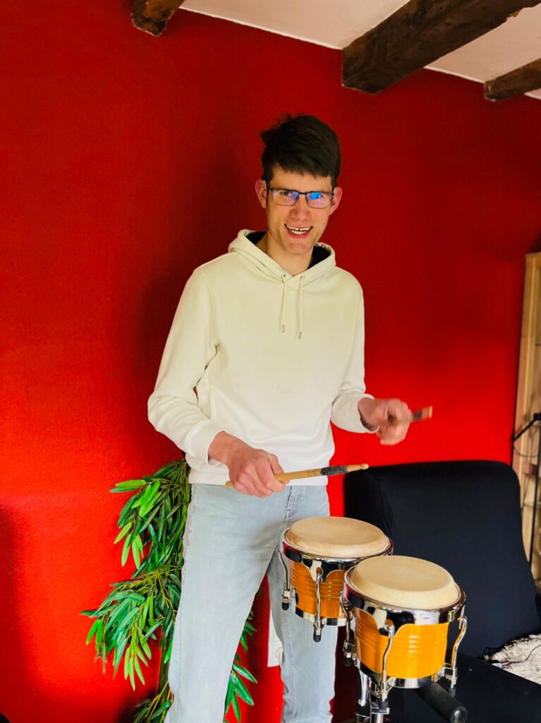 Das kann seine Mutter Nicole nur bestätigen: „Wenn er am Schlagzeug sitzt, taucht er völlig ab in seine Welt. Er ist sehr fokussiert auf sein Spiel und geht rhythmisch mit dem ganzen Körper mit. Er schwitzt dabei sehr stark und lässt sich von nichts und niemandem ablenken.“