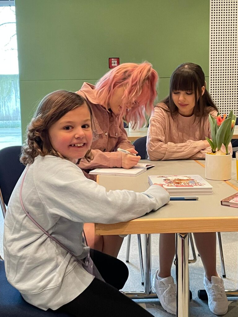Der 23. März 2024 begann mit einer Mischung aus Aufregung und Vorfreude. Bei kaltem und verregnetem Wetter versammelten sich Emma und ihre Familie vor dem Eingang der Leipziger Buchmesse, bereit für das lang ersehnte Treffen! Pünktlich um zehn Uhr öffneten sich die Türen und sie betraten den Veranstaltungsort. Im Konferenzraum wurden sie herzlich von Viktoria, Sarina und deren Team empfangen. Emma, von Emotionen überwältigt, bekam im Anschluss nicht nur die Gelegenheit, all ihre Fragen zu stellen, die sie sich vorher sorgfältig überlegt hatte, sondern durfte den beiden auch ihre Ideen für zukünftige Videos mit auf den Weg geben.