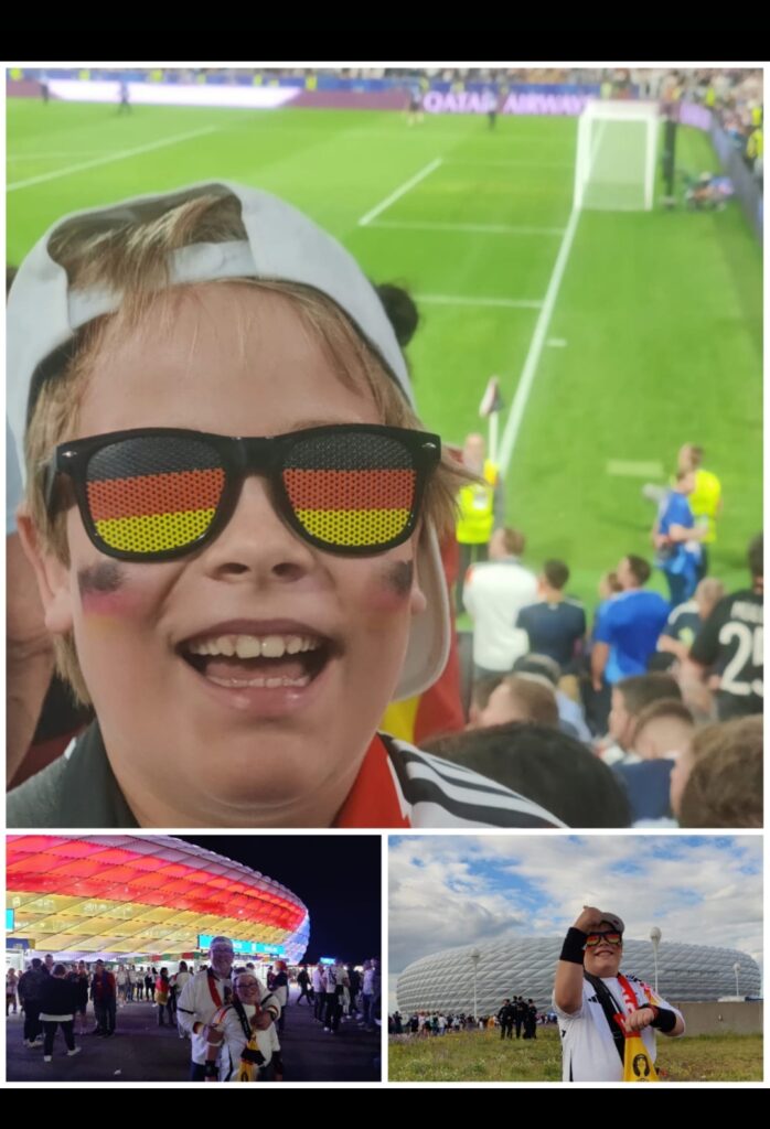 Was für ein Mega-Event! Fußball-Fan Anton durfte gemeinsam mit seinem Vater das brillante EM-Eröffnungsspiel „Deutschland gegen Schottland“ live in der Münchener Allianz Arena erleben! Voller Begeisterung verfolgten Vater und Sohn den traumhaften EM-Start der deutschen Elf und die gigantische Atmosphäre in der Arena. Vollgepumpt mit Glücksgefühlen feierten sie nach dem 5:1-Sieg des DFB-Teams gemeinsam mit zigtausend Fans den Traumstart der deutschen Mannschaft. Schöner konnte es nicht mehr sein, ein fantastisches Erlebnis!!!!