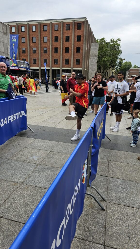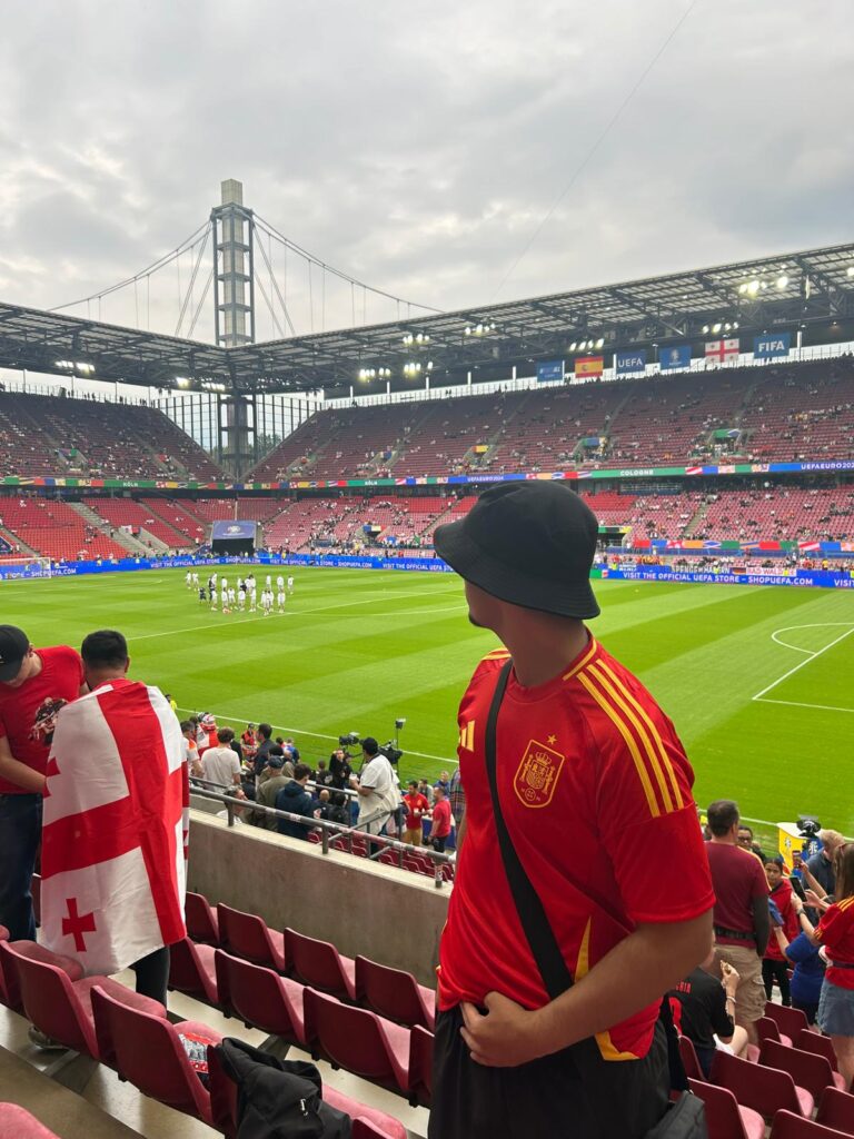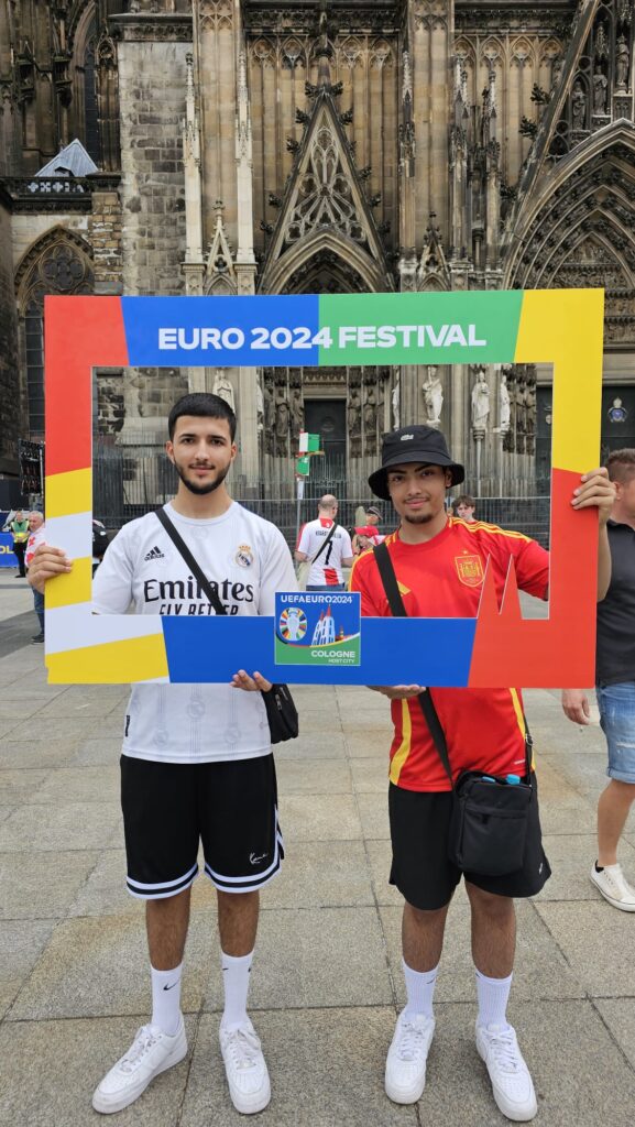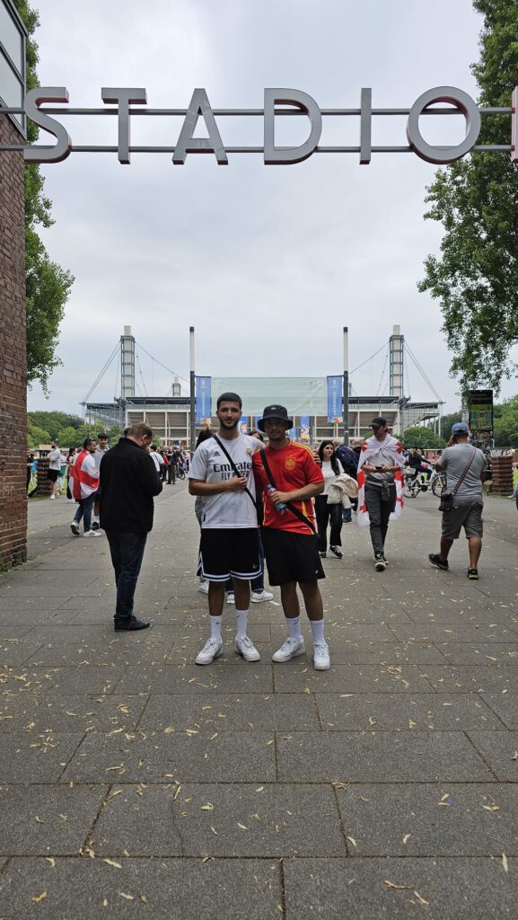 Bereits am Vorabend schauten die beiden gebannt das Spiel Deutschland gegen Dänemark beim Public Viewing am Rhein. Doch live vor Ort ist es eben doch nochmal anders. Überall sah man fröhliche, tanzende und gut gelaunte Fans der beiden Mannschaften und es herrschte eine tolle Stimmung im Stadion. Dort angekommen nahmen Cemran und Merwan ihre Plätze ein, von denen sie einen sehr guten Blick auf das Spielfeld hatten und der spanischen Mannschaft beim Aufwärmen zuschauen konnten. Den Spielern so nahe zu sein, war ein absolutes Highlight. Das Spiel endete 4:1 für Spanien und für Cemran ging damit ein unvergesslicher Tag zu Ende.