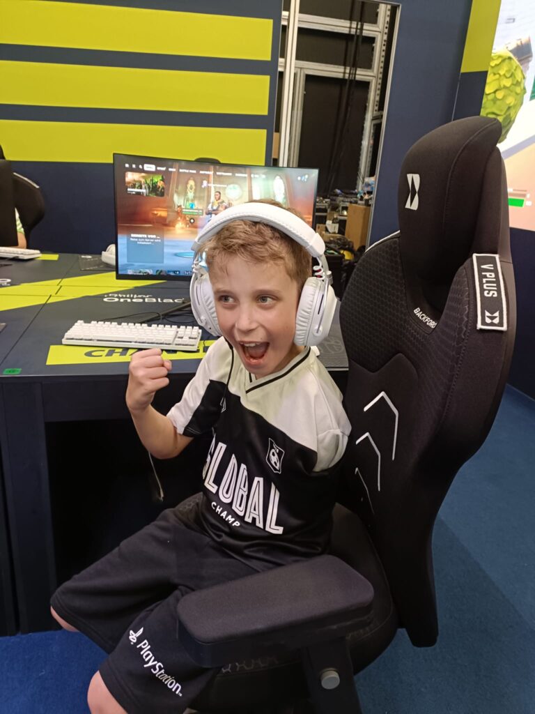 Auf der Messe verblüffte Jamie mit seinen Fähigkeiten an der Spielkonsole und beeindruckte damit sogar die Profis! Es war ein sehr cooles Erlebnis für ihn, mal auf einem echten Gaming-Stuhl zu sitzen und mit einer richtig guten Konsole zu zocken.