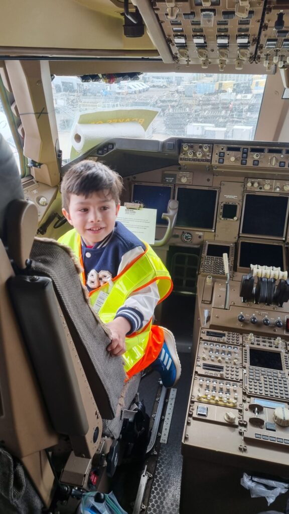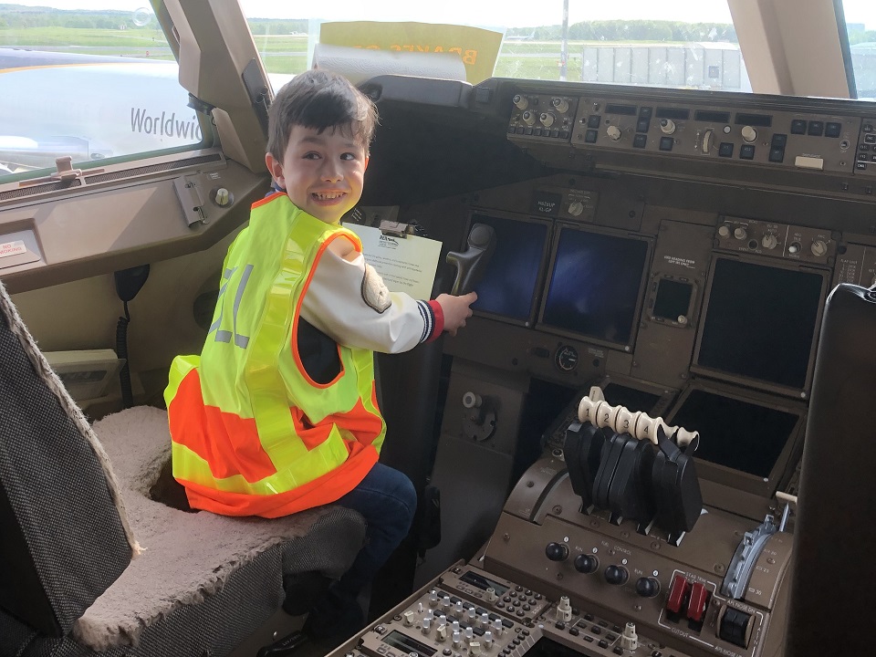 Der Fünfjährige war super aufgeregt und voller Vorfreude! Ein absolutes Highlight war für ihn, in die UPS Boeing 747 zu schauen und sogar auf dem Pilotensitz im Cockpit Platz zu nehmen! Im Anschluss durfte Linus im „Follow-Me-Car“ ein Flugzeug vom Rollfeld abholen und zur Parkposition begleiten. Wow, näher konnte man nicht drankommen! Außerdem lernte die Familie Zollhund Kalle kennen, der allen seine beeindruckenden Fähigkeiten vorführte. Linus hatte einen Riesenspaß dabei, Kalles Spielzeug immer wieder in der großen Halle zu verstecken. Zum Abschluss bekam Linus noch Geschenke, die ihn immer an diesen einzigartigen Tag erinnern werden.