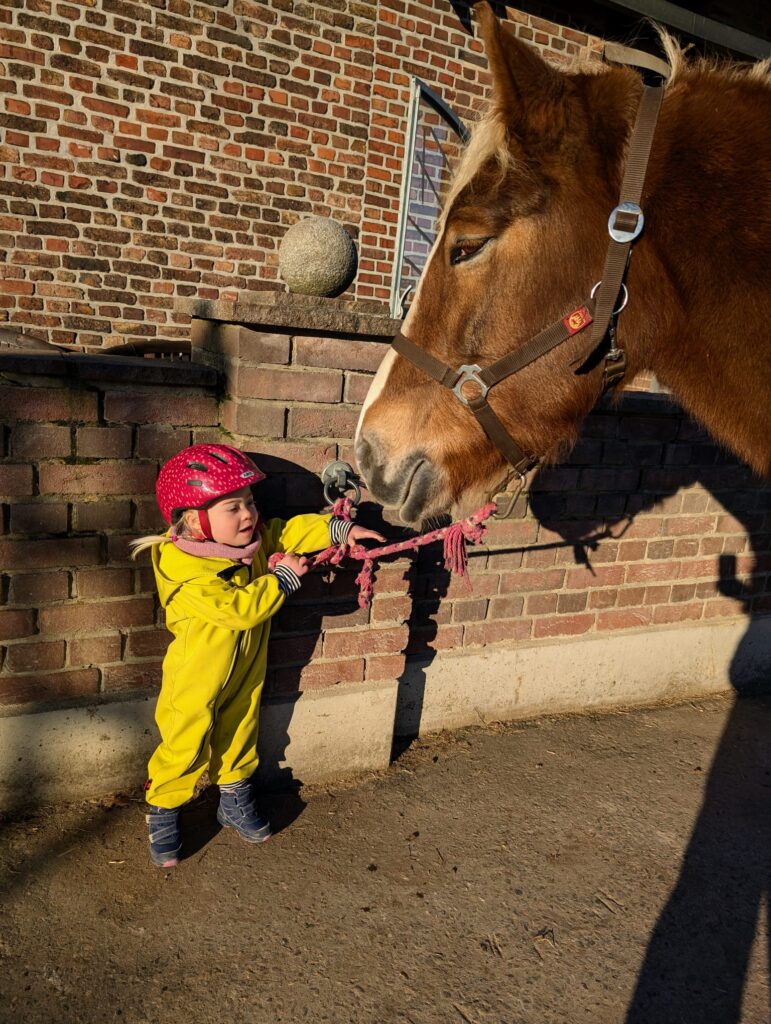 Phina ist vier Jahre alt und ein richtiger Pferdenarr! Sie freut sich riesig, dass sie jetzt regelmäßig zur Reittherapie gehen darf.