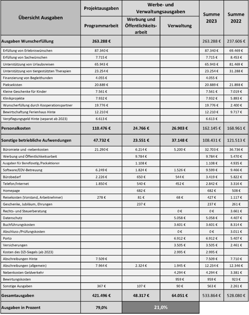 Durch die erfreuliche Entwicklung bei den Spendeneinnahmen und weitere Einsparungen in der Verwaltung hat wünschdirwas e.V. das Geschäftsjahr 2023 mit einem Überschuss von fast 190.000 € abgeschlossen.