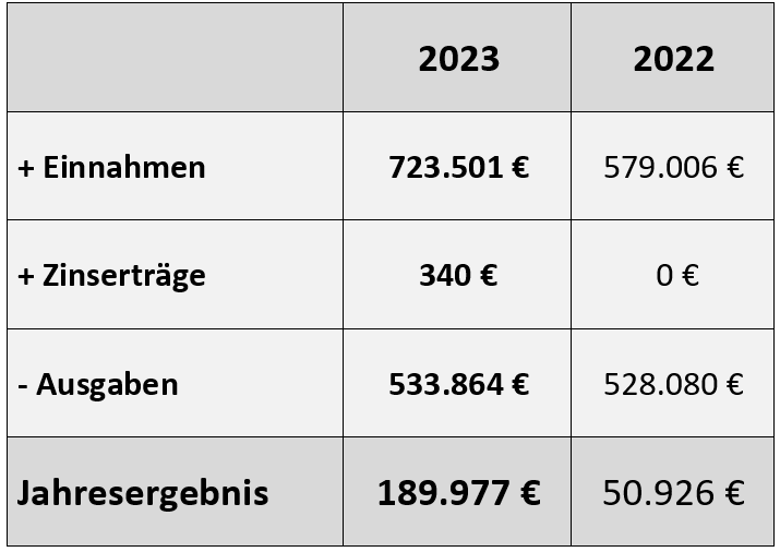 Hier können Sie den aktuellen Jahresbericht 2023 als PDF herunterladen, besonders die Tabellen sind so besser lesbar.